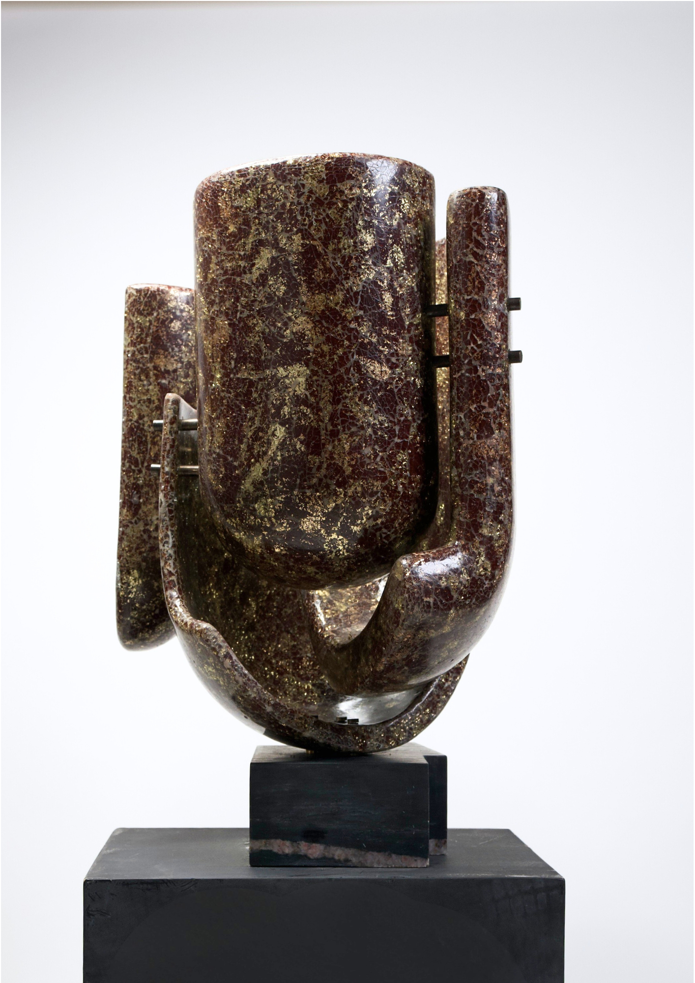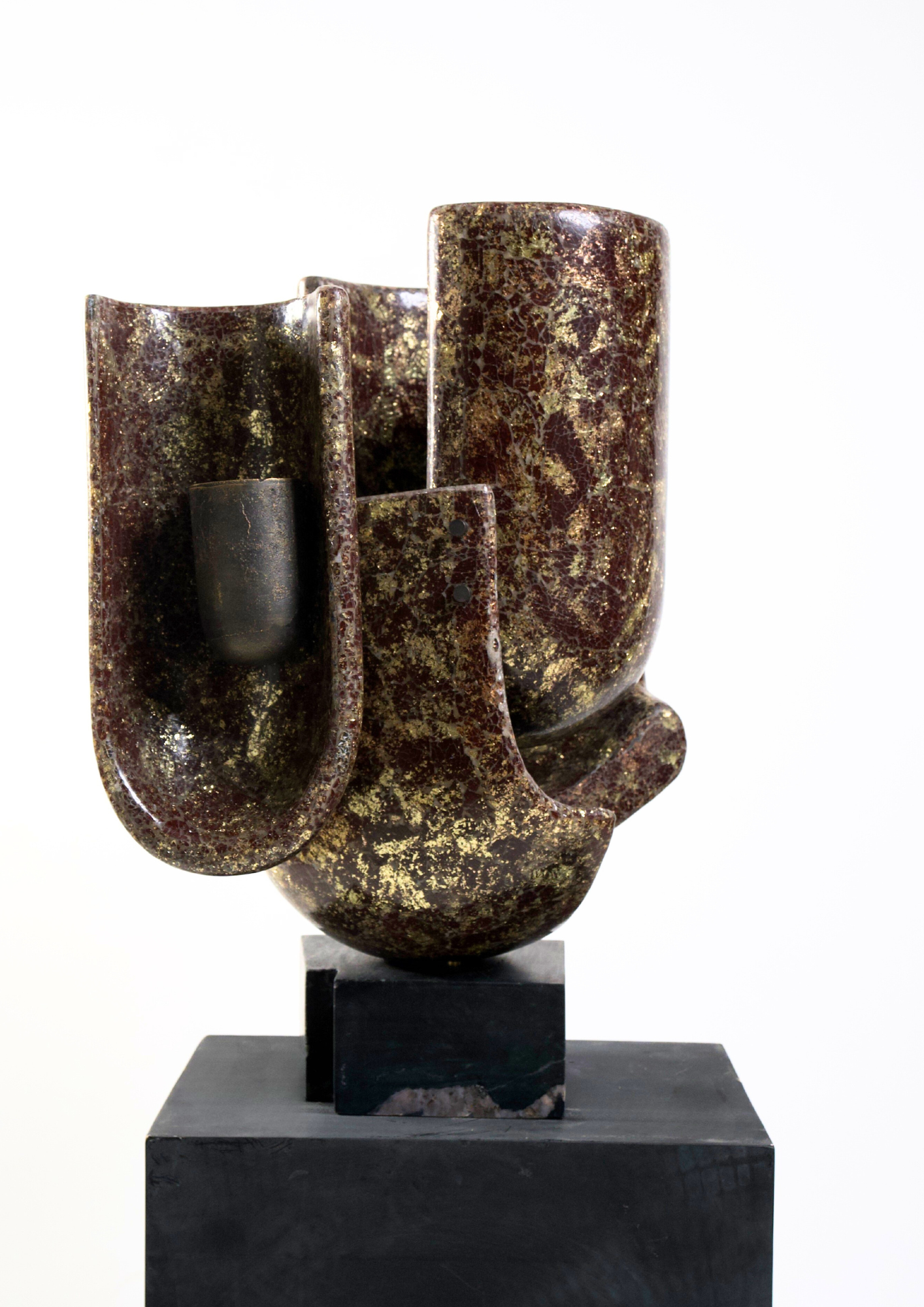 Anantam takes shape as a moment of unfolding. Reflective vessels cluster together, softening brutalist geometry into organic cylinders. The forms allude to the lingam while remaining botanical in spirit. Mirror mosaic surfaces scatter light into the surrounding space, turning air into atmosphere. Suspended, Anantam exists as a garden without soil— growth sustained through light and repetition.