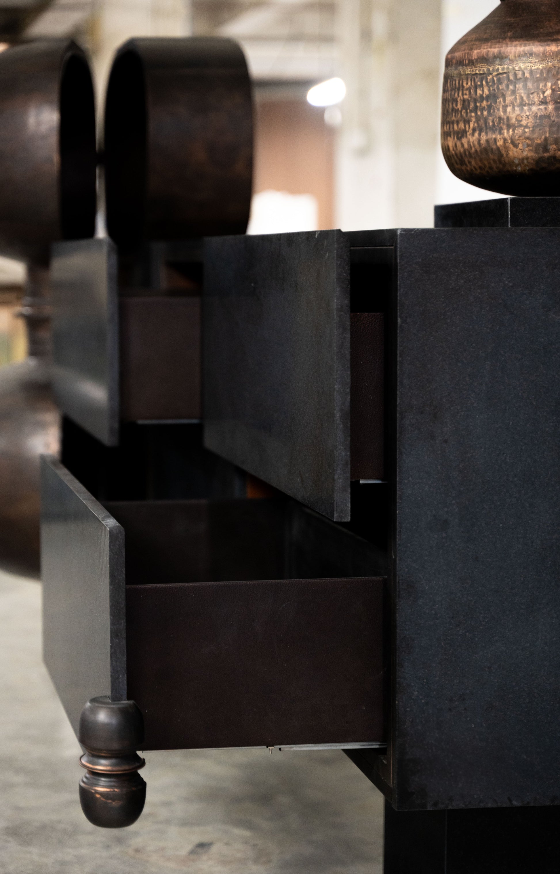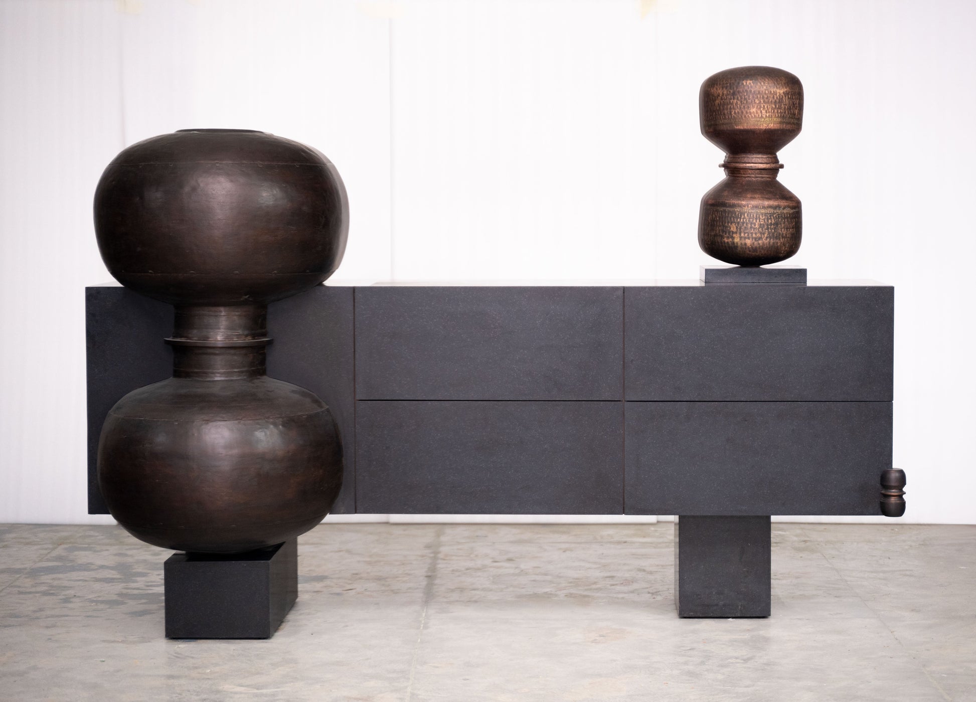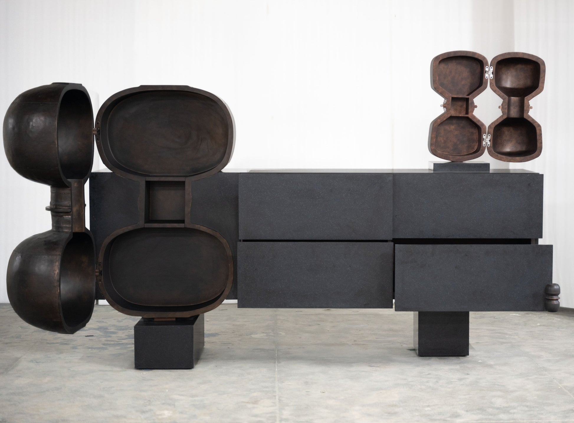 The Brahmand Cabinet is inspired by the timeless beauty of empty vessels - once essential, now often overlooked in modern design. By reinterpreting and reflecting their forms,this cabinet gives new life to traditional silhouettes, blending old-world charm with contemporary functionality. The result is a statement piece that bridges history and modernity, honoring heritage while seamlessly fitting into today’s spaces.