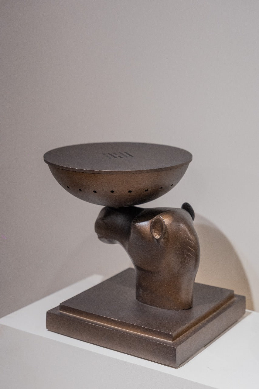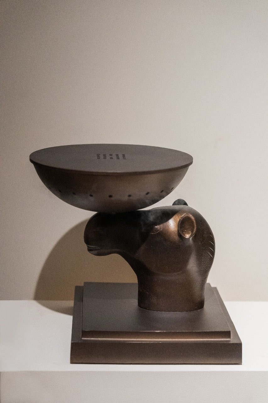 Camel Dhoop is a sculptural incense burner where ritual meets whimsy. A cast aluminum camel form balances a perforated bowl that allows fragrant smoke to gently escape, turning the piece into a functional sculpture. Its poised and minimal silhouette draws from desert iconography while grounding the object in contemporary craft sensibilities.