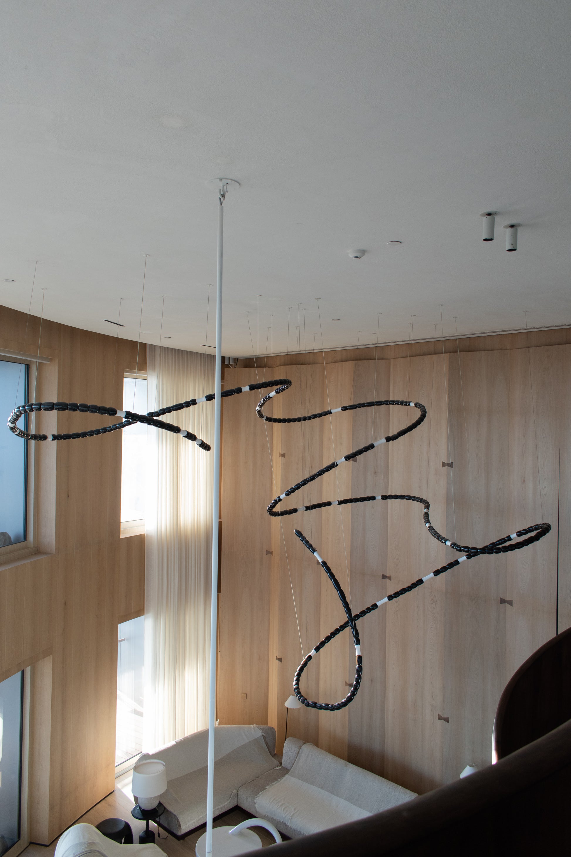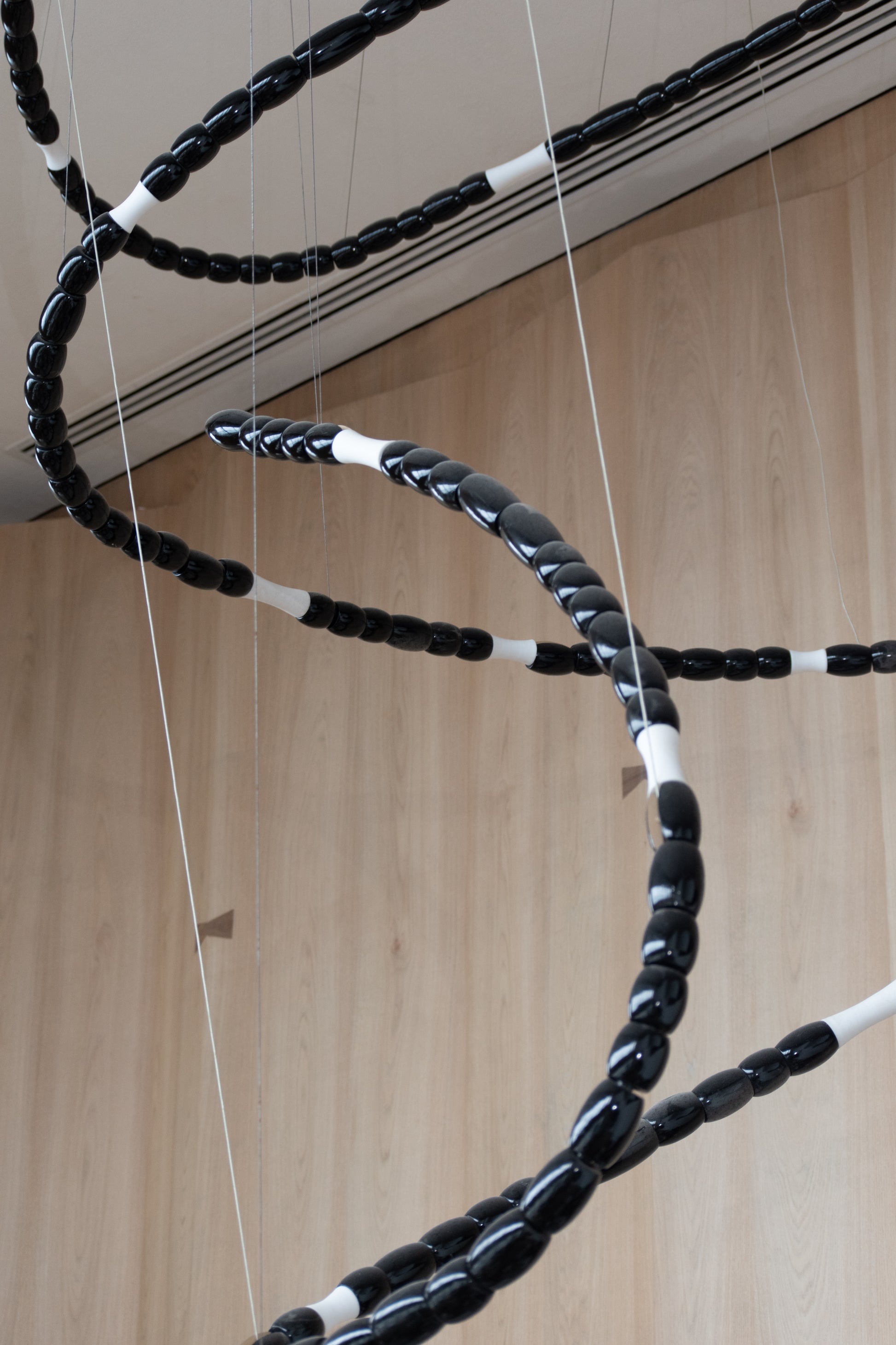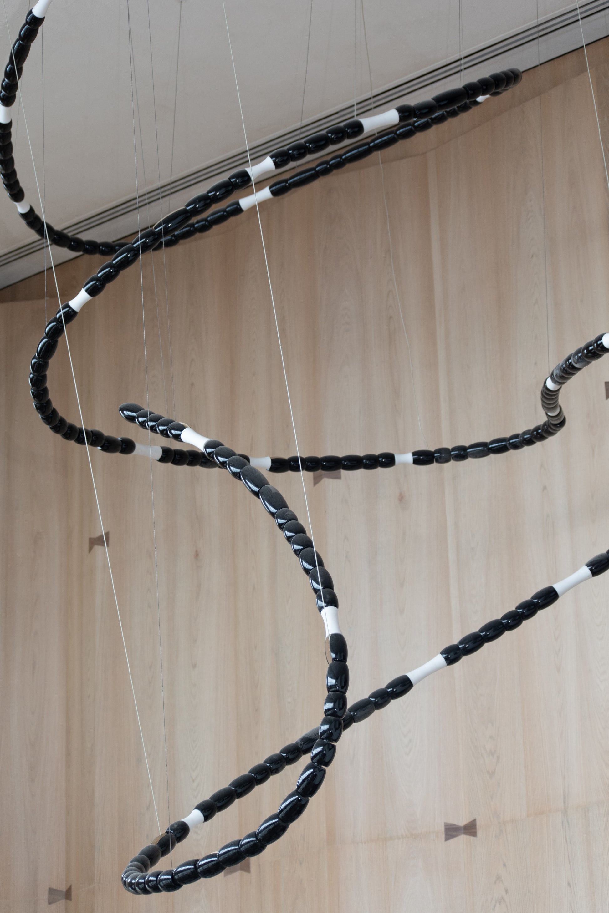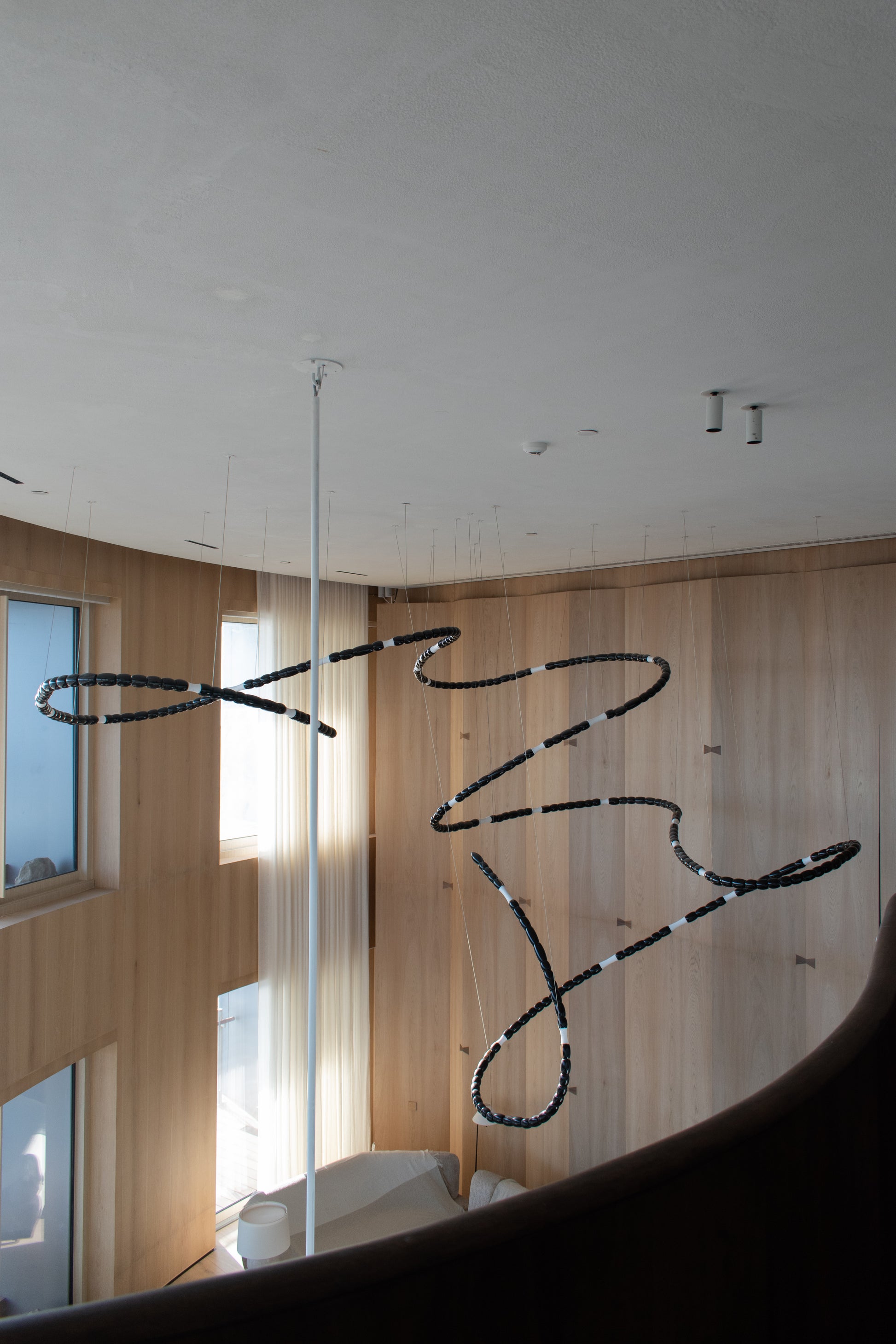The Channapatna light,’ a take on the indigenious toy-craft of Karnataka is a functional light fi tting which is made in collaboration with Noor Salma, a master craftswoman - The naturally lacquered beads follow the curvatures profi le along the object’s bends. Light shines through the contrasting concave beads that position themselves intermediately.