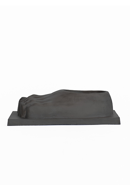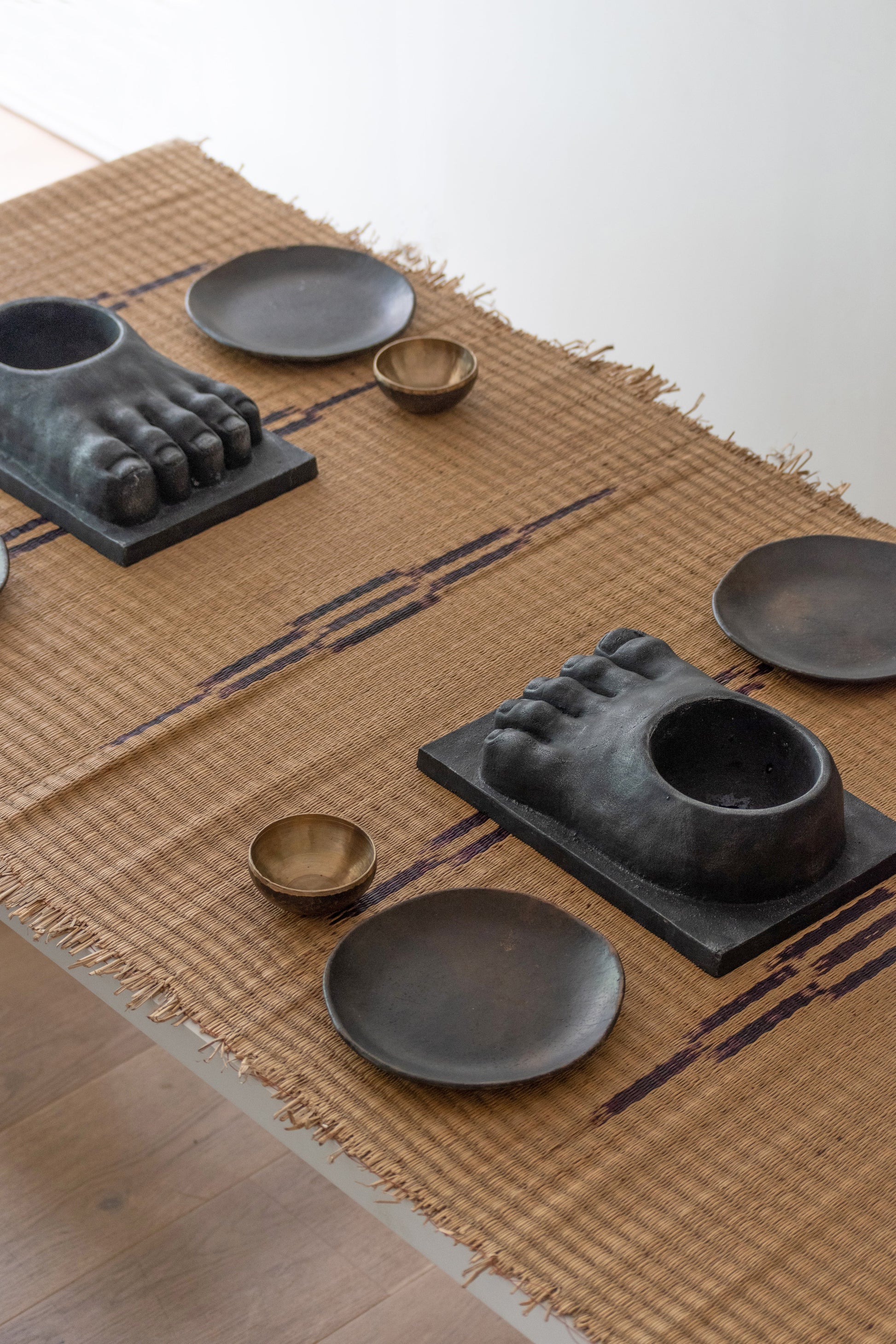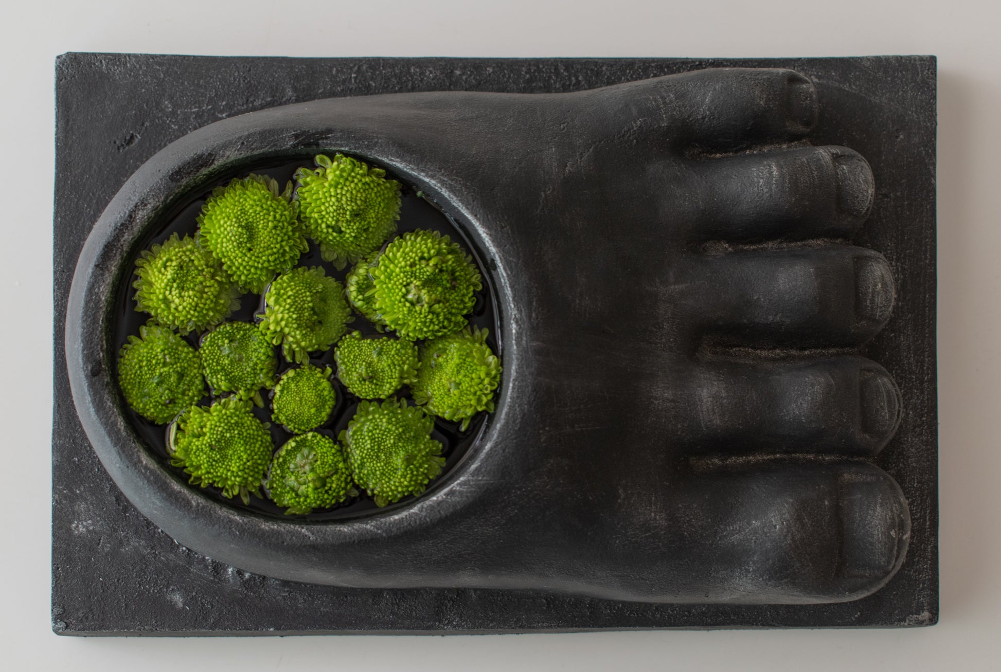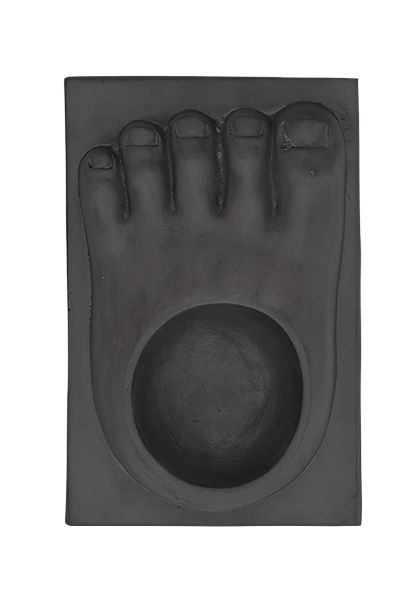 Reminiscent of one legged Shiva representing the cosmic pillar of the universe, this skilfully crafted functional sculpture cast in aluminum with its monumental form is inspired by Colombian artist, Fernando Botero. Revered as an emblem of auspiciousness in certain cultures, the foot symbolic of the Axis mundi lends the space a strong yet distinguished presence.