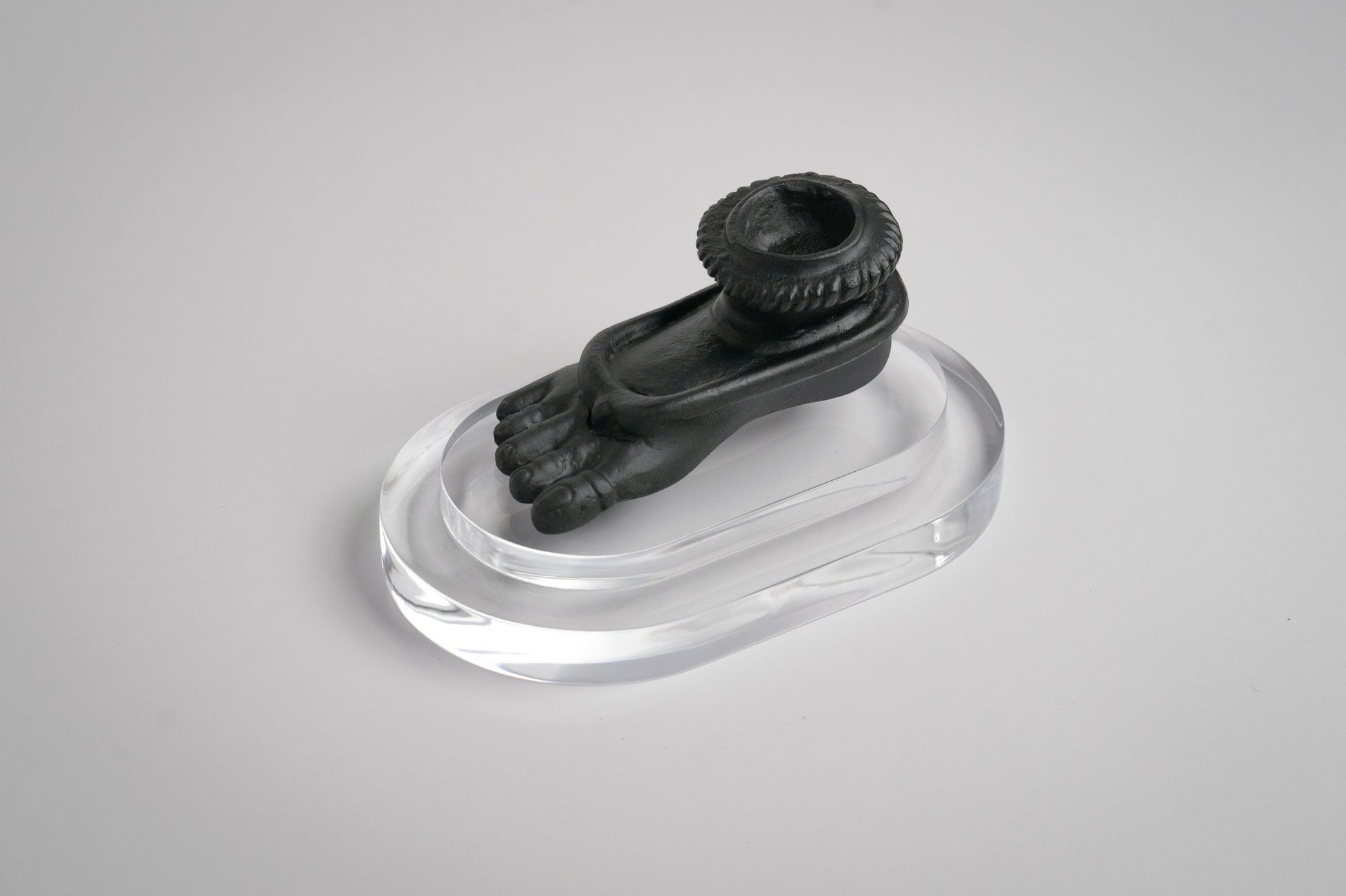 Cast in Aluminium, the Mini Ekapada is a representation of Goddess Parvathi’s foot symbolic of auspiciousness. Adorned with a kada, exuding feminine energy, this sculpture is mounted upon a double resin plate and can be alternatively purposed to house a tea light candle within, emanating positivity to its interior environment.