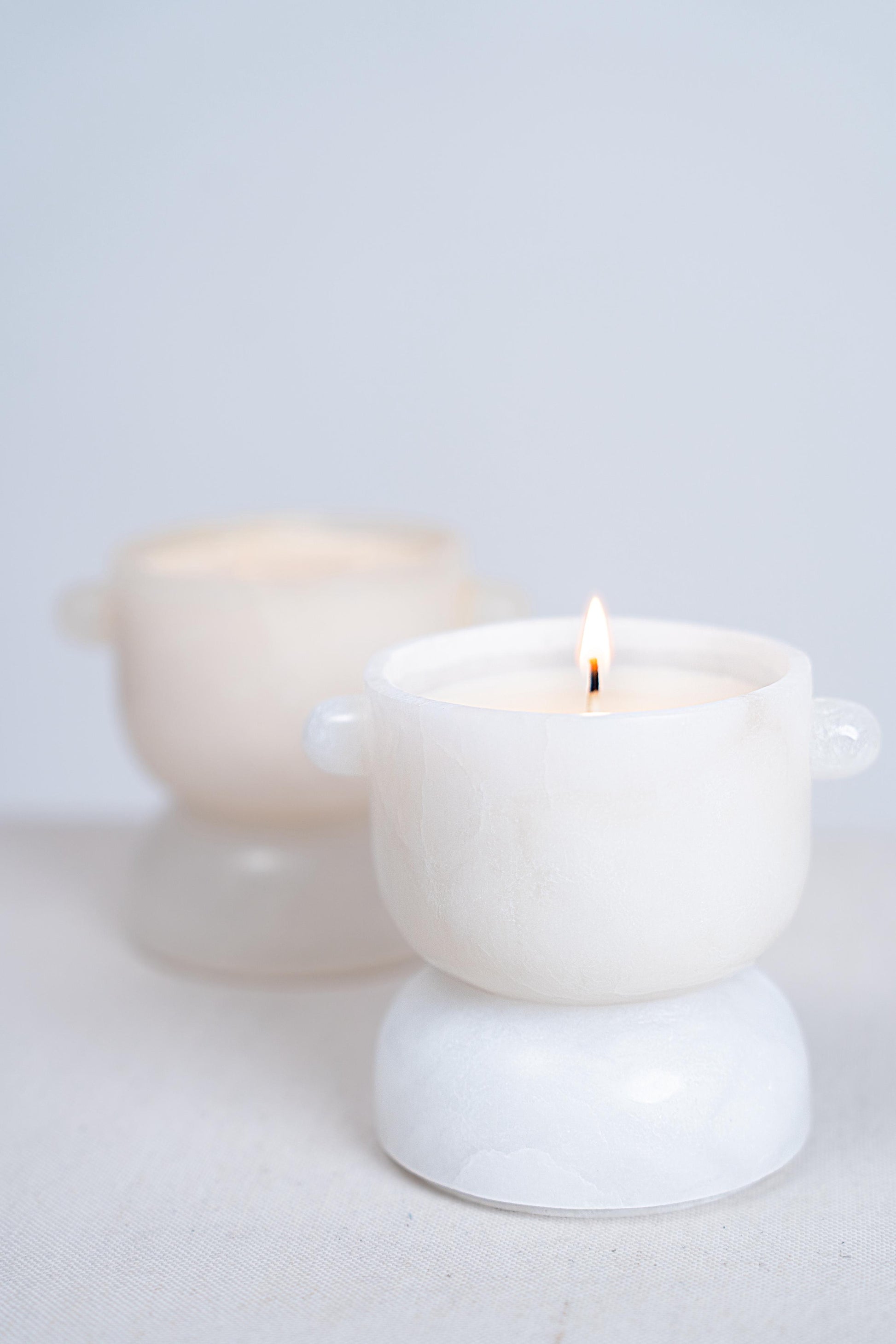 Light, held gently. Carved from translucent alabaster, Miniform is a candle holder that glows from within — its simple silhouette elevated by precise craftsmanship. Each piece is hand-carved, its form both playful and poised. Poured with natural soy wax and scented with essential oils in collaboration with Sequel, it’s a vessel of warmth, fragrance, and quiet luxury. Designed to illuminate not just space, but mood. Minimal form. Maximum presence
