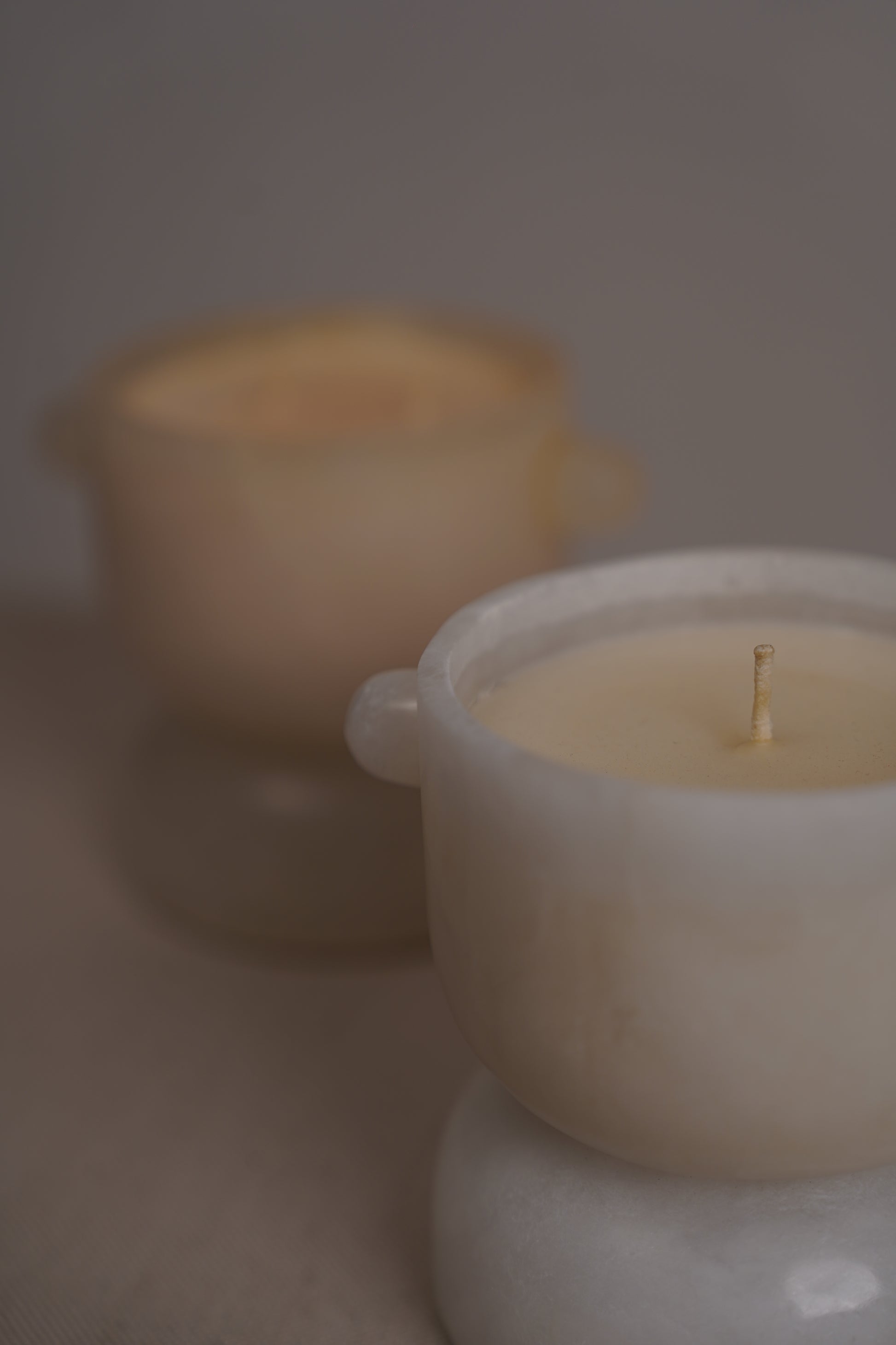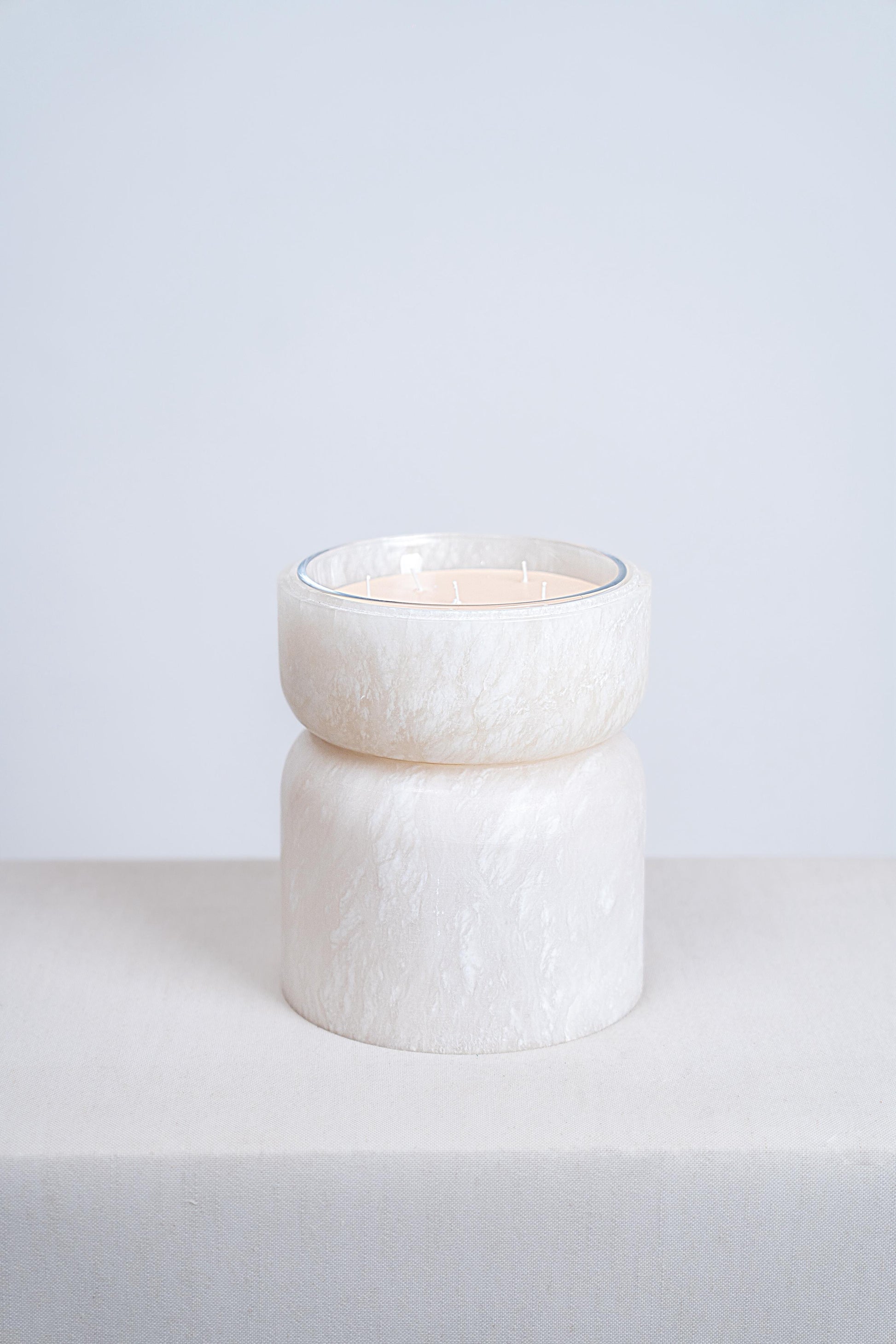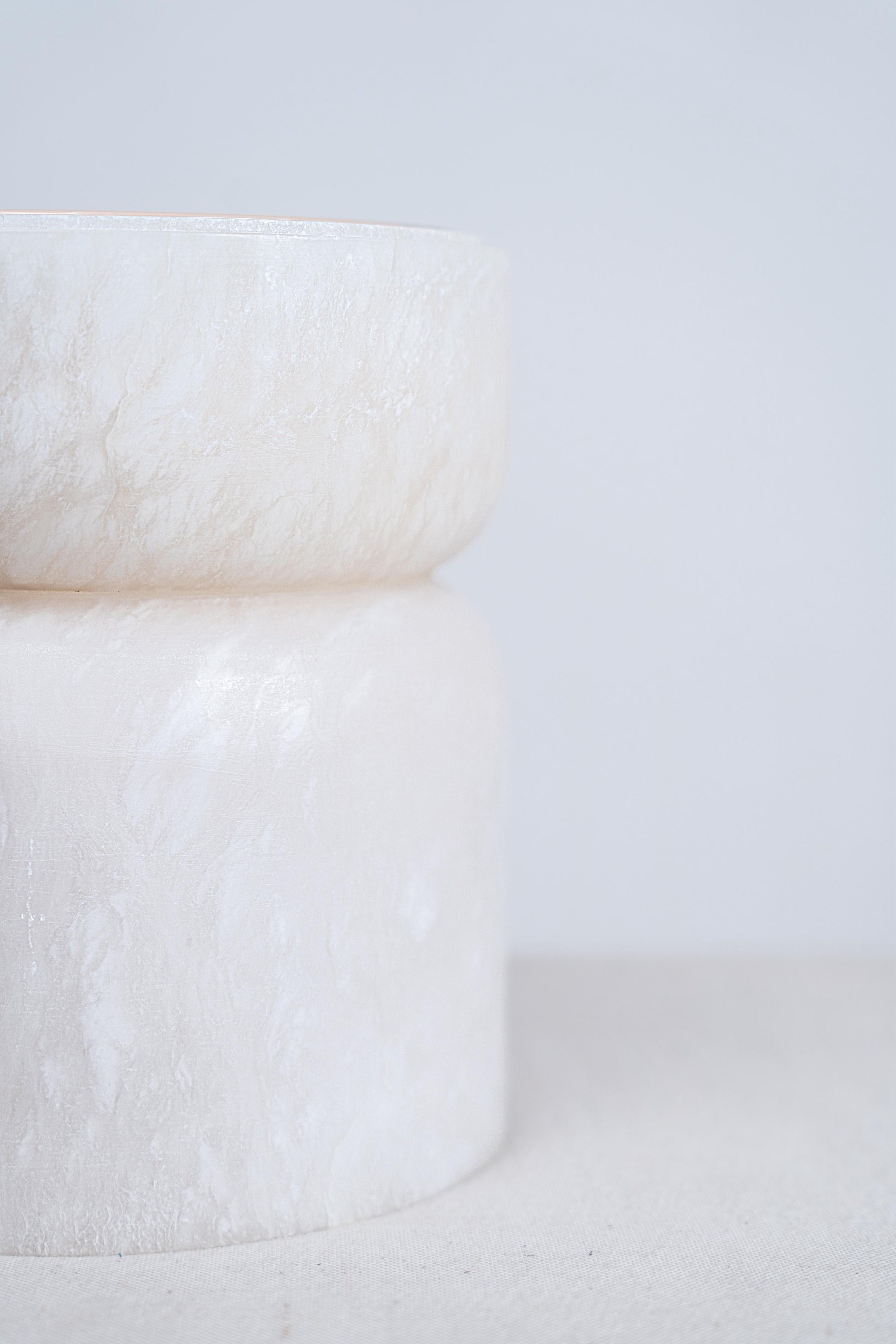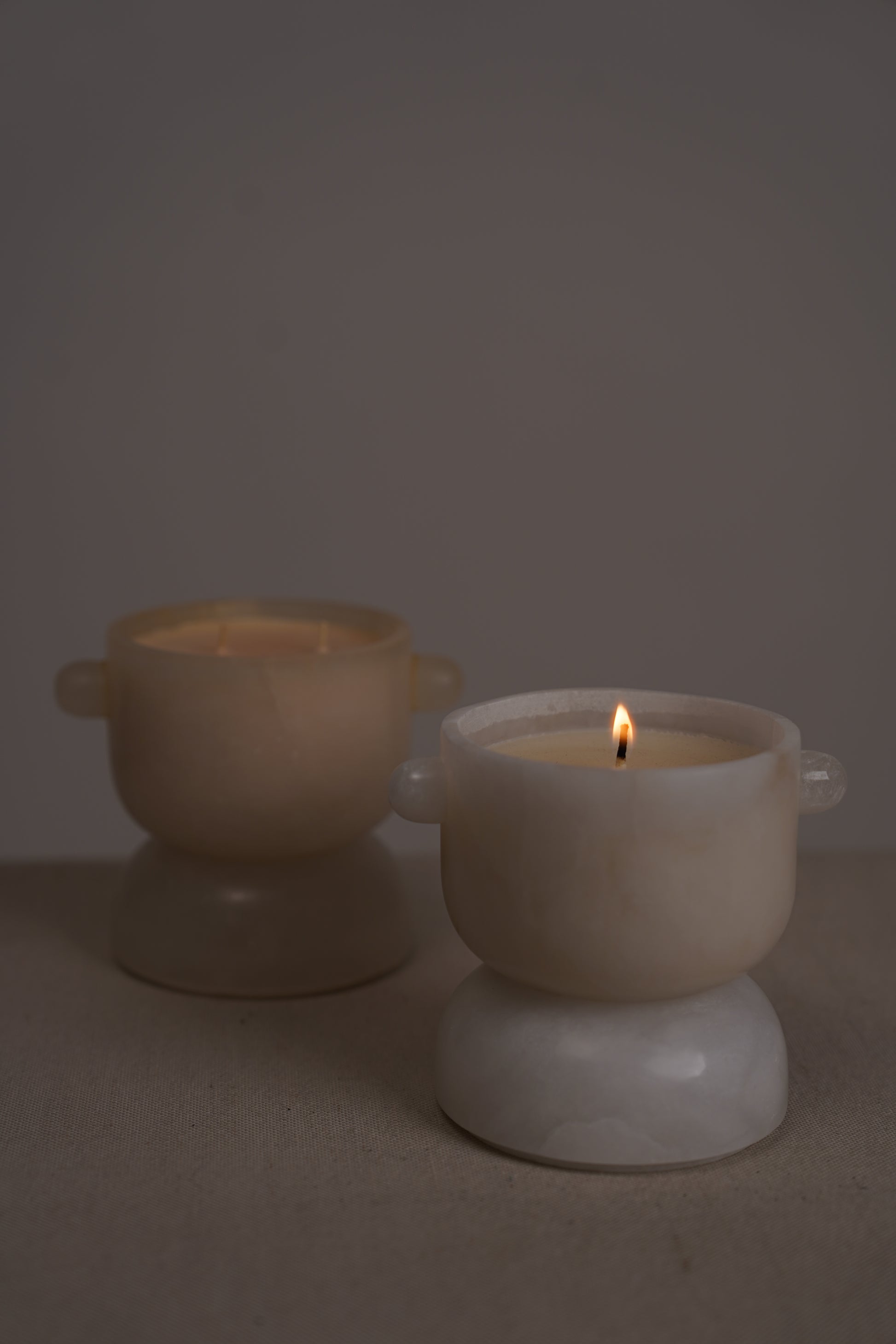 Illuminating the natural alabaster stone from within, the monoform makes for a perfect candle holder through simple form and impeccable detail.The contemporary design and hand made proceesses illustrates the foundational philosophy of the atelier.