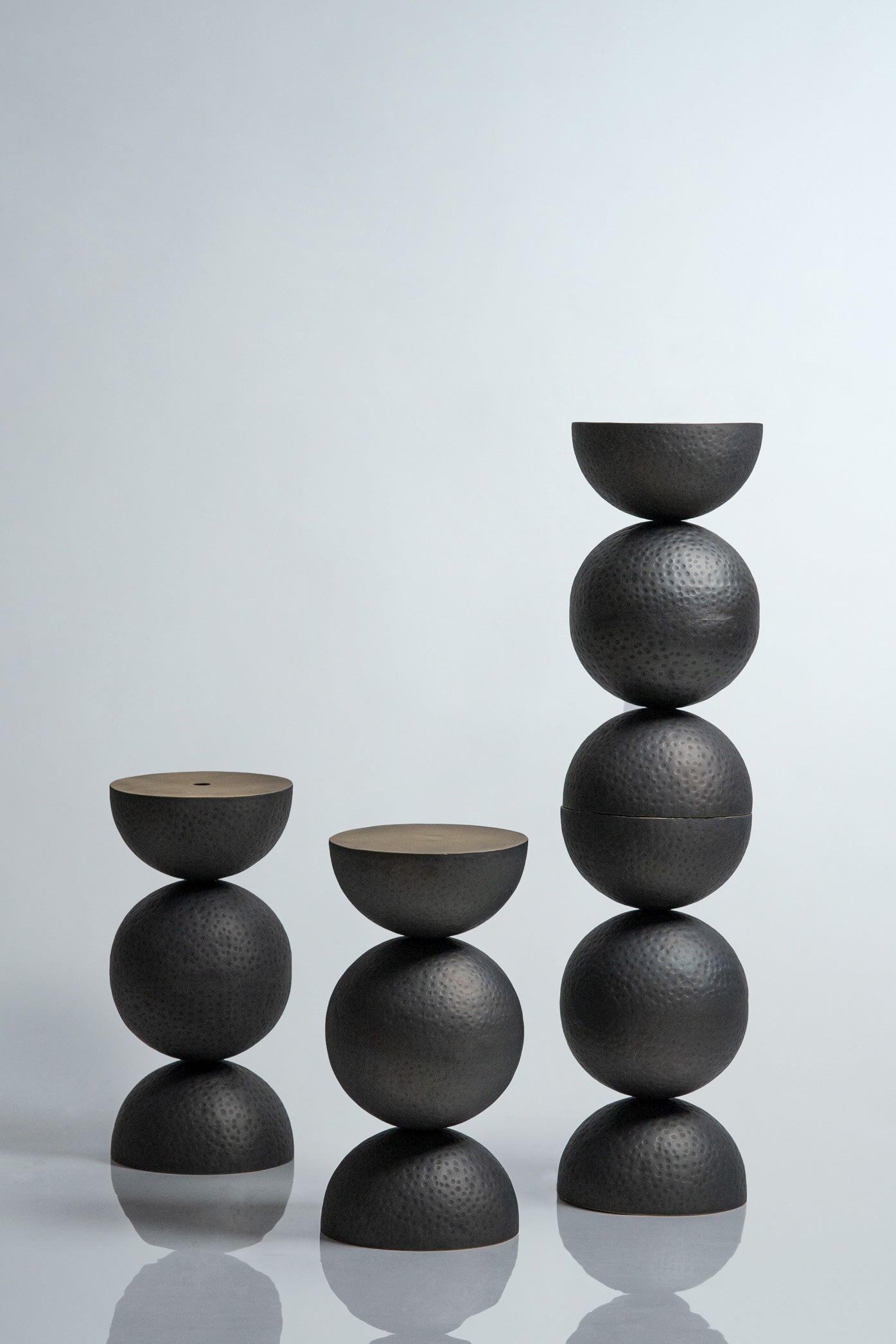 Introducing the Multiball Brass Stambh - a versatile design object crafted from hand-beaten brass, standing tall at 5 feet, reminiscent of the moons. Its solid structure showcases the skill of its makers, with a gleaming brass finish adding timeless elegance. Besides celebrating dynamism and form, it adds functional value by disintegrating into four stools.