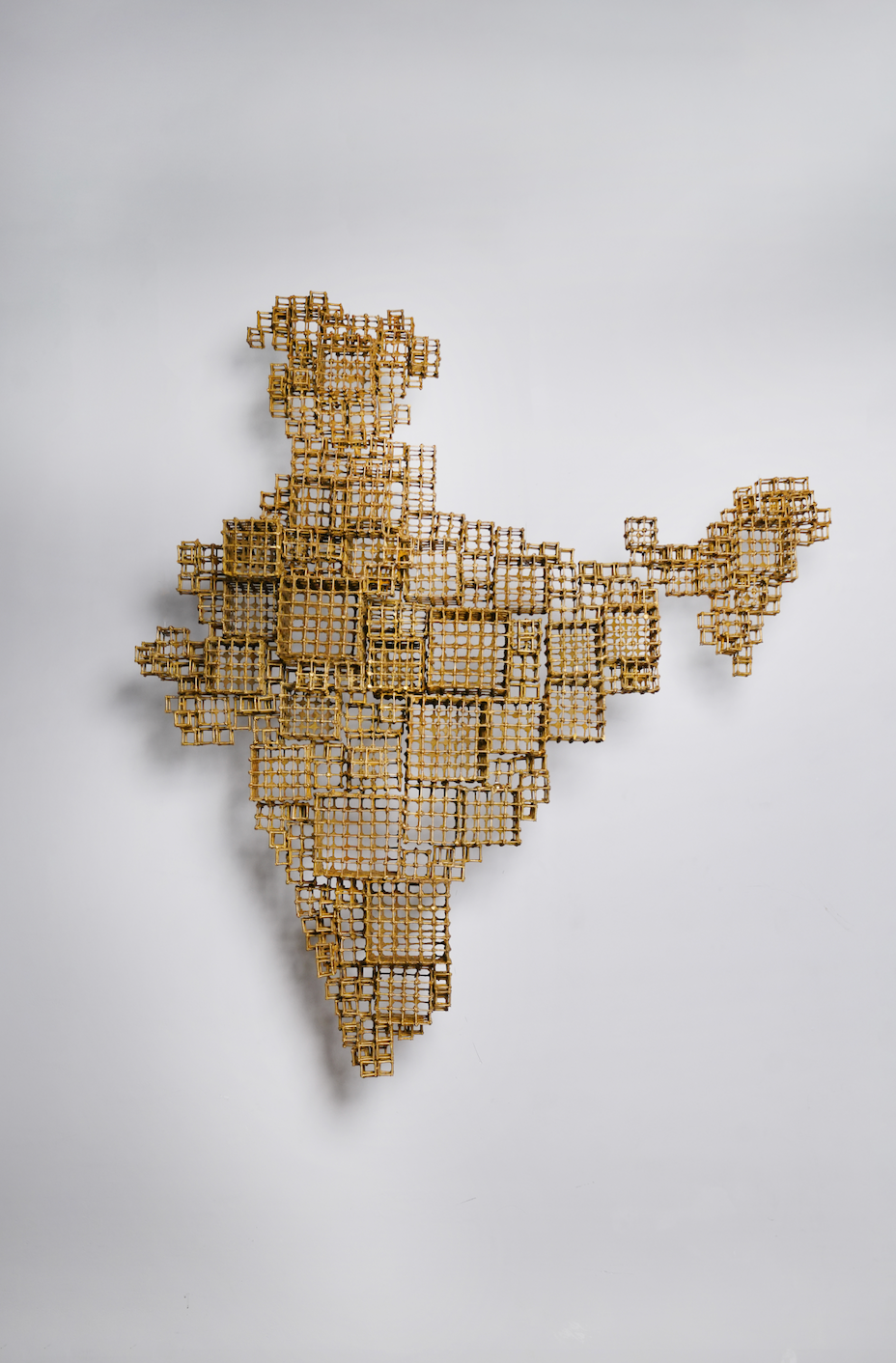 Gold reflects this richness, while ‘Svarn Bhumi’ (Land of Gold) tells the story of India’s unity through its diverse traditions. The Dokra cubes symbolize clusters of these crafts, each embodying a piece of India’s soul. The concept of the ‘Sone Ki Chidiya’ (golden sparrow) represents India’s golden age—a time of beauty and prosperity. This piece seeks to revive that spirit through the crafts that define India’s heritage.