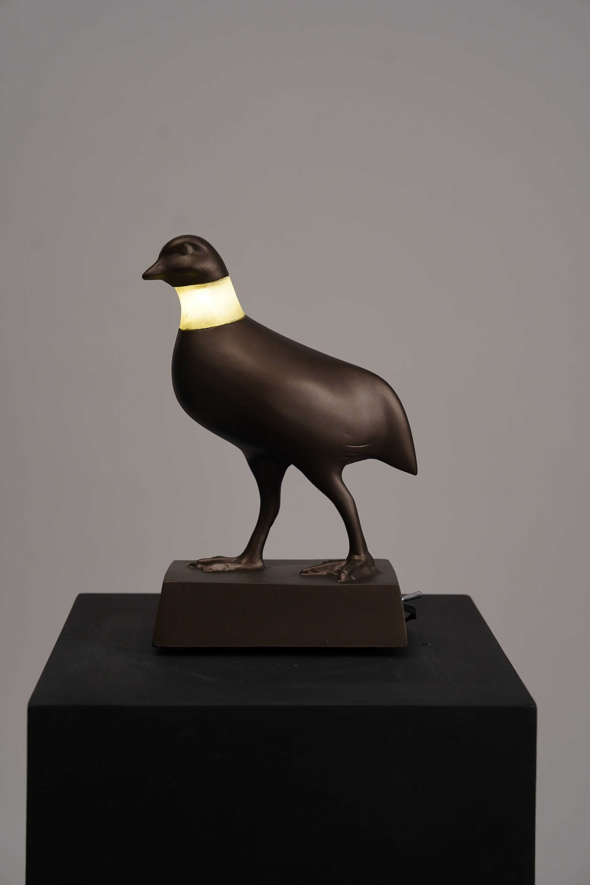 A gentle tribute to India’s native grey partridge, the Teetar Lamp is cast in aluminium with a burnished bronze finish. Its minimalist form houses a soft in-built glow, bringing intimacy and character to any corner — a lamp that quietly lights up tradition.